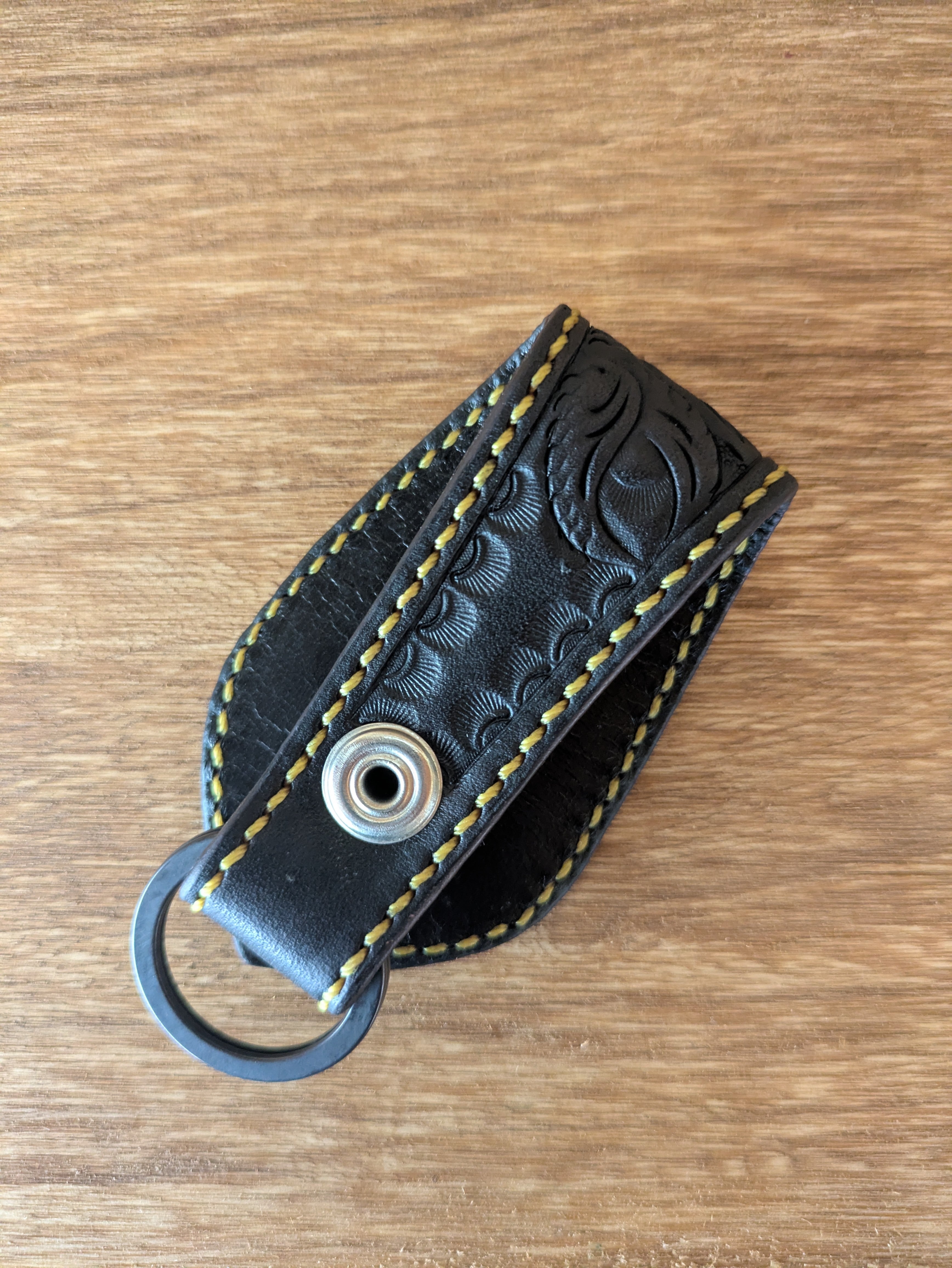 オリジナルベルトループキーホルダー【フラワーカービング】ブラック | coolcraft