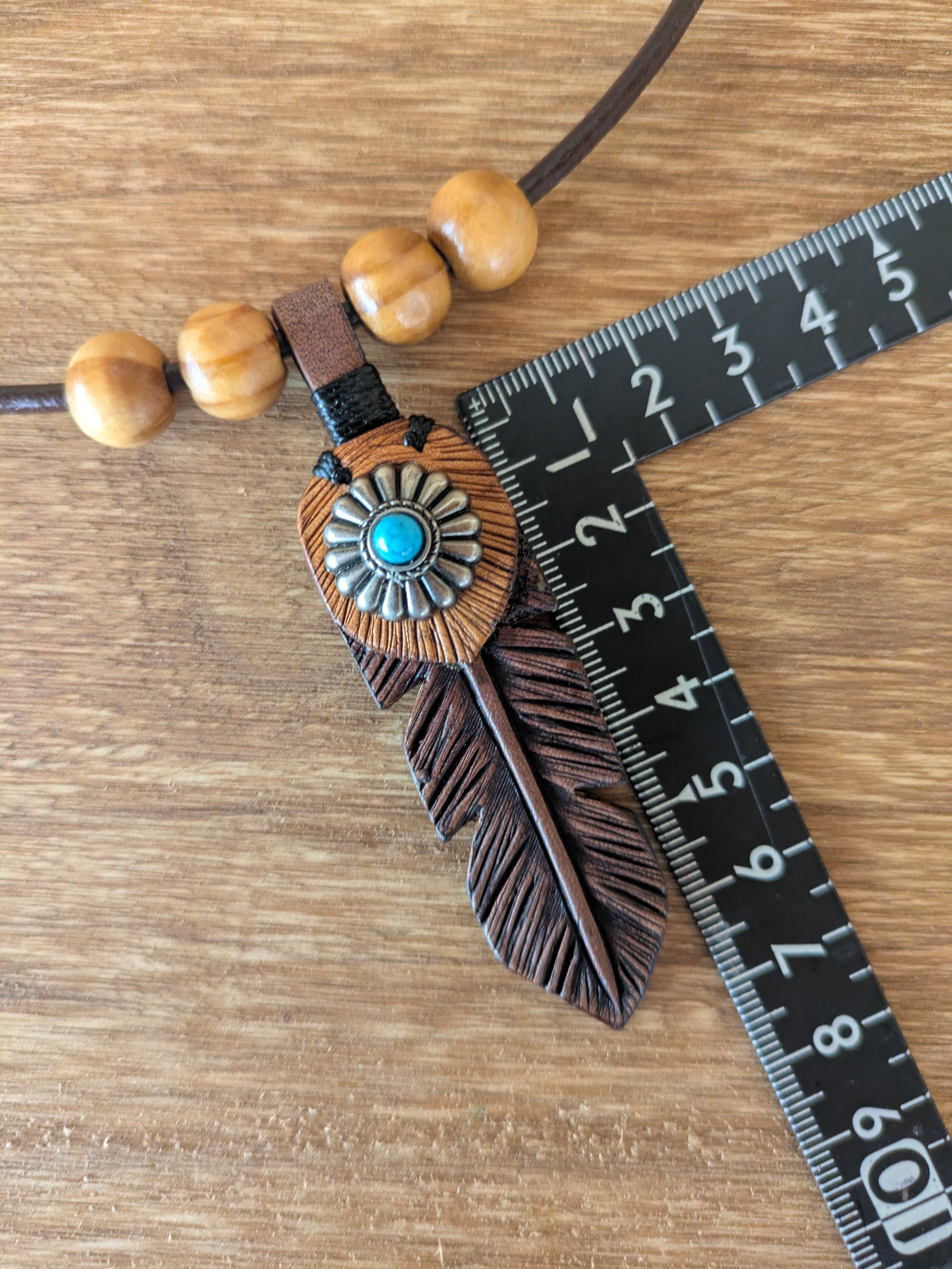 オリジナルレザーネックレス【フェザー】ウッドビーズ×コンチョ