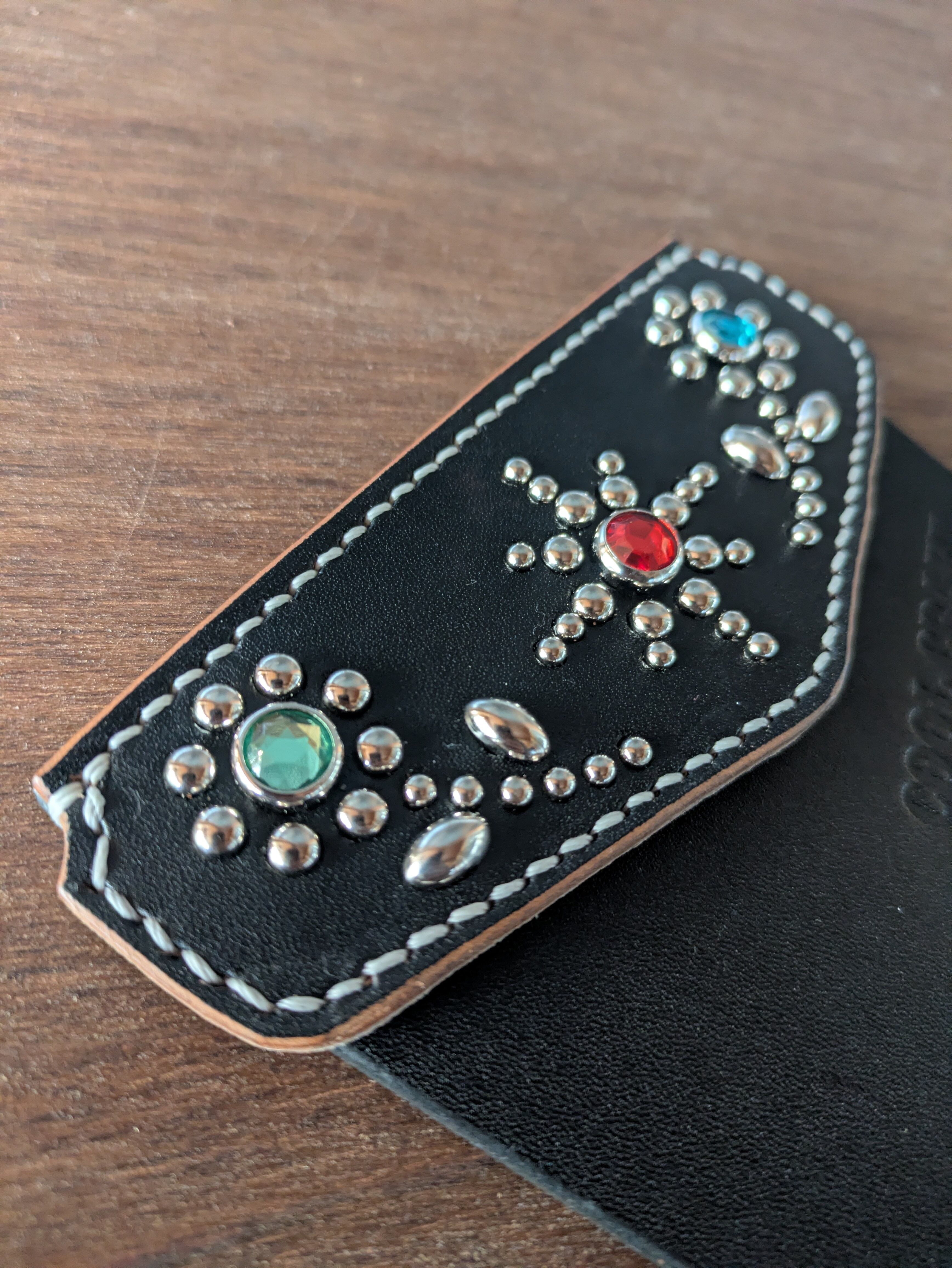 お尻のドレスアップ❗️ スタッズポケットフラップのご紹介です。 ジーンズのバッグポケットに入れるだけで注目度アップ❗️ 栃木レザーにスタッズを打ってお洒落に仕上げました。 一般的なジーンズに合うサイズ設計となっております。 これから季節、お尻もお洒落に❗️ 牛革 スタッズ