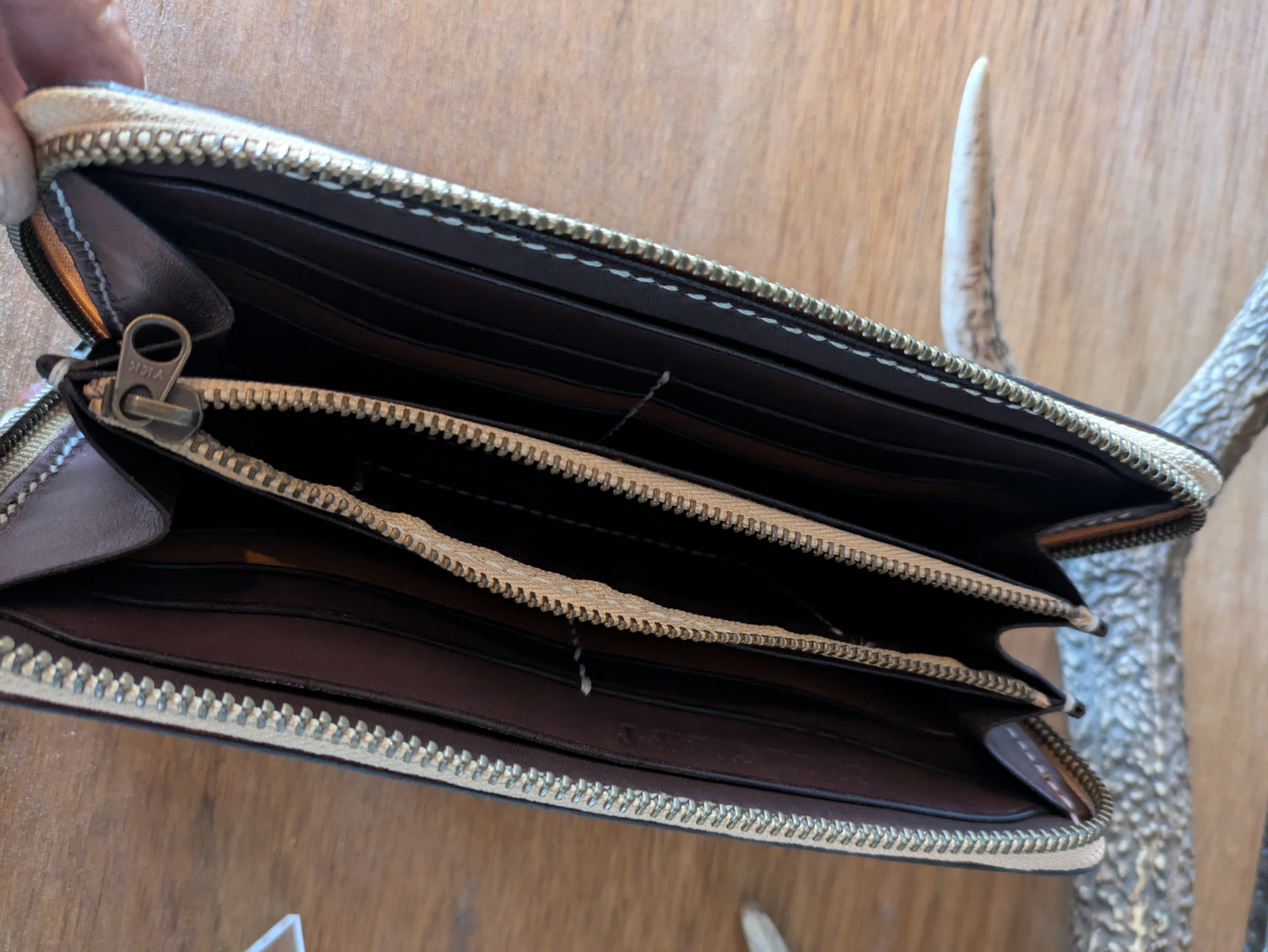 イノシシレザーのロングラウンドジップウォレットです!